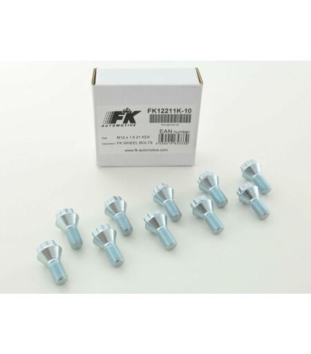 Fk Automotive - Jeu de boulons de roue (10 pièces) Longueur d'arbre 21 mm, collier conique, tête courte, argent M12x1,5 -
