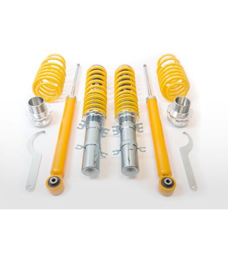 Kit coilover FK, suspension sport réglable en hauteur pour VW Golf 4 1J 1997 à 2003 uniquement pour les véhicules sans support stabilisateur sur l'amortisseur Homologué TÜV / avec certificat de pièces selon §19.3 Abaissement d'environ 35 à 55 mm Matériel: acier galvanisé réglable individuellement en hauteur, avec clé à ergot charge max à l'essieu avant 1010 kg charge maximale sur essieu arrière 985 kg la suspension sport pour plus de plaisir de conduite à petit prixLe kit coilover FK est le premier choix pour tous ceux qui souhaitent régler leur véhicule : - Réglage simple et individuel de la hauteur dans la plage de réglage testée - conduite sportive et ferme - qualité de première classe pour une longue durée de vie - Plus de plaisir de conduire grâce à un excellent comportement dans les virages - solution complète prête à installer - amortisseurs sportifs de qualité FK parfaitement coordonnés Contenu de la livraison : 1x kit coilover FK et clé à crochetGolf IV (1J1) Golf IV ...