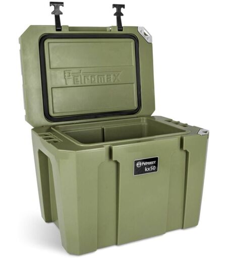La Glacière passive Petromax kx50 permet de s'approvisionner de sorties pendant plusieurs jours en toute liberté. Le système de refroidissement ultra-passif fonctionne uniquement avec de la glace, des pains de glace ou de la glace carbonique disponible dans le commerce. La glacière kx50 à double paroi et isolée conserve de la glace au frais jusqu'à 12 jours, tout sans compresseur ! L'intérieur de la kx50 (50 l) est construit de telle façon qu'on peut transporter soit 70 x 0,33 l des canettes, soit 20 x 1 l des bouteilles en position debout. La Glacière Petromax est également idéale pour ranger le poisson frais de la pêche ou des provisions apportées. Avec son corps robuste en polyéthylène la glacière peut être utilisée comme siège ou surface de pose. Le remplissage de la glace et le nettoyage sera facilité par le système de vidange intégré. Utilisation correcte de la glacière •Refroidir la glacière un jour avant l'utilisation dans un espace froid ou avec de la glace •Ne remplisse que ...
