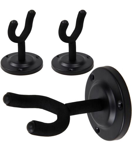 Un support solide pour votre guitare ! Support mural rembourré en métal pour toutes les guitares classiques, e-guitares, banjo, basses et autre instruments. Accrochez le simplement au mur avec les 3 vis, le support mural offrira une place sur pour vos instruments et amènera l'ordre chez vous. La fourche est bien rembourrée. Vos instruments restent ainsi à l'abri des griffures. Convient également aux instruments lourds! Avantages du produit - Support rembourré, protège des rayures - En métal robuste - Convient également aux lourds instruments - Capuchons de protections au bout du support - Vissable sur 3 niveaux - Facile à assembler Caractéristiques techniques: - Matériaux: métal - Trous: 5mm - Largeur fourche (intérieur): 6cm - Diamètre plateau: 8cm - Couleur: noir Contenu de la livraison: - 3 x Supports muraux pour instruments ...