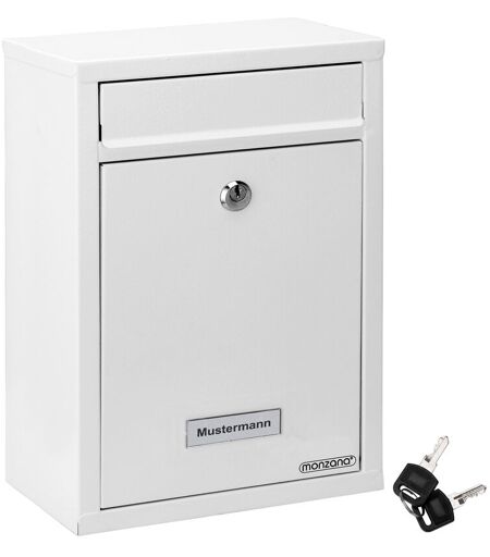 MONZANA® Boîte aux lettres murale Boîte postale Boîte aux lettres acier incl. 2 clés plaque nominative verrouillable Blanc