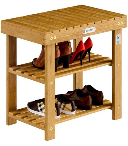 Casaria - 2en1 Meuble à chaussures et banc en bois d'acacia robuste étagère à chaussures 2 tablettes avec banc rangement armoire m - 50x30x46cm