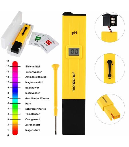 monzana Testeur d''eau pH digitale avec écran lcd avec pile test eau piscine étang spas pH-mètre