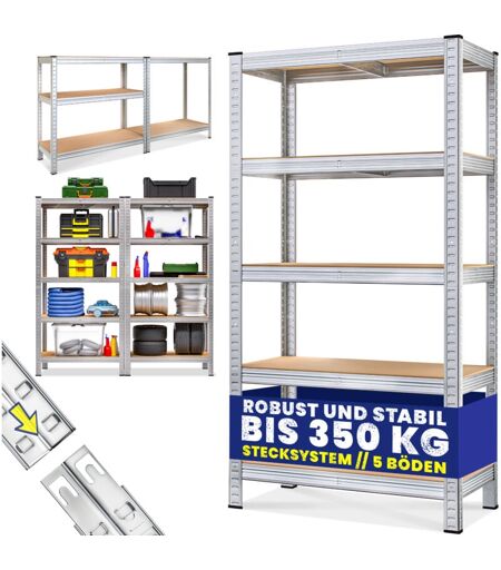 MONZANA® Étagère charge lourde 4/5 niveaux Étagère métallique modulable Meuble de rangement garage atelier cave 5 plateaux - 170x75x30cm