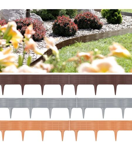 Description générale Bordure de délimitation élégante et pratique pour le jardin, idéale pour séparer rapidement et facilement vos espaces extérieurs, tels que la pelouse et les parterres de fleurs. Grâce à ses raccords flexibles, cette bordure s'adapte aisément aux angles et aux courbes, offrant une solution esthétique et fonctionnelle pour l'aménagement paysager. Spécifications techniques Matériau : plastique Dimensions - 1 élément (LxH) : 78 cm x 18,65 cm Couleurs disponibles : brun, gris, terre cuite Compatibilité et accessoires Cette bordure peut être combinée avec d'autres éléments de jardinage pour créer des designs uniques et personnalisés. Installation L'installation est simple : il suffit d'enfoncer les bordures dans le sol et de les ajuster selon vos besoins. Aucun outil spécial n'est nécessaire. Utilisation Utilisez cette bordure pour délimiter des allées, des chemins, des pelouses et des parterres. Elle est parfaite pour maintenir l'ordre dans votre jardin tout en ...