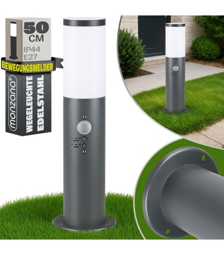 Deuba Lampadaire Dahlia - Luminaire extérieur - Allée, terrasse - Acier inoxydable Anthracite avec détecteur de mouvements
