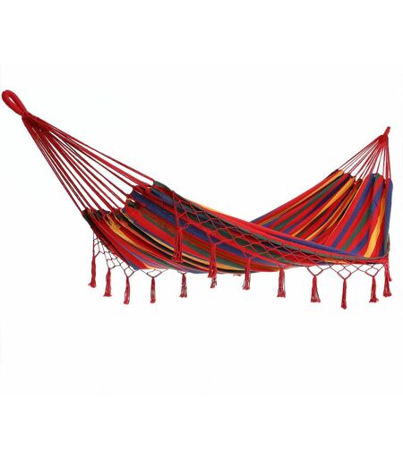 DETEX Hamac à franges en coton/polyester Surface de couchage 210x150 cm Charge 300 kg Couleur au choix Rouge