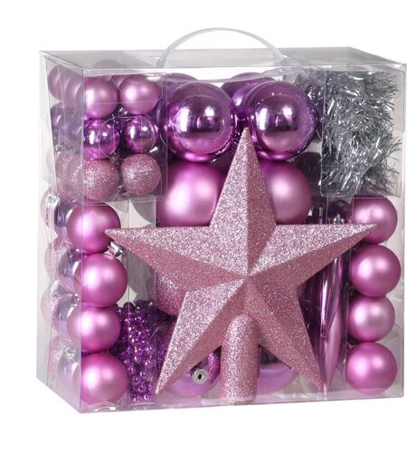Deuba Lot de 77 boules de Noël Décorations pour sapin en plastique robuste Décoration de Noël intérieur extérieur Rose