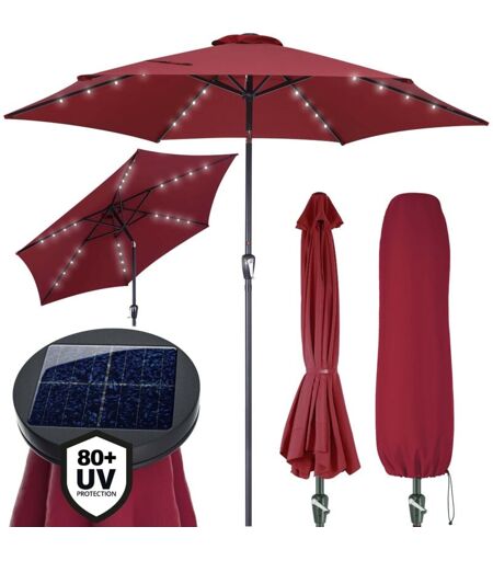 KINGSLEEVE® Parasol de jardin extérieur LED solaire 300cm Pare-soleil inclinable avec manivelle Protection UV 80+ Rouge