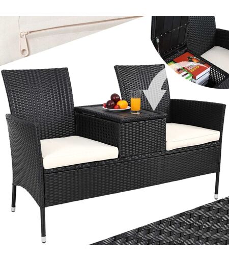 Casaria Banc de jardin en Polyrotin Résistant aux intempéries Table Rangement 143x64x88cm Coussins max. 320kg Banc de jardin Balcon Banc de cinéma extérieur