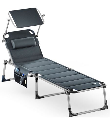 Casaria Chaise longue aluminium Bari XXL 210cm pare-soleil coussin amovible dossier bain de soleil pare soleil transat resistant Gris chiné
