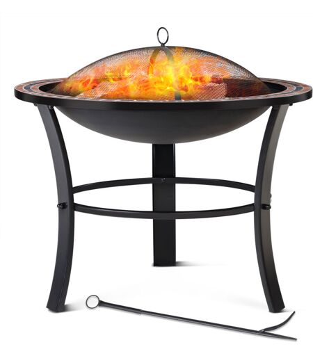 Gardebruk - Brasero rond Fuoco ø 76 cm acier laqué pierres mosaïque couvercle jardin