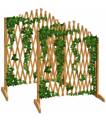 Deuba 2x Treillage Jardin Brun 180x107cm Support Plantes grimpantes Brise-Vue Pliable Clôture de Jardin Treillis Extensible Bois Pare-Vue