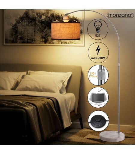 Deuba Lampe à arc moderne socle en marbre abat-jour réglable 150-175 cm lampadaire sur pied design classique maison luminaire intérieur