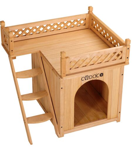 Cadoca - Maison pour chats en bois de pin 65x55x54cm 2 étages échelle balcon niche pour chiens villa pour animaux terrasse