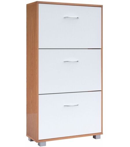 Deuba - Meuble à chaussures 3 abattants 115x60x24cm Armoire de rangement 18 paires Étagère couloir entrée Hêtre - Blanc