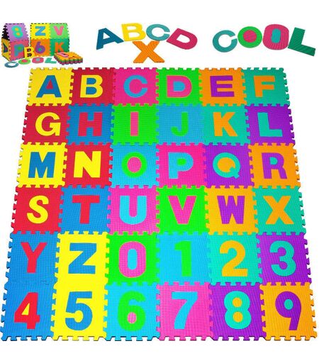 Description générale Transformez le sol de la chambre de votre enfant en un terrain de jeu coloré avec ce tapis puzzle de 3,64 m². Composé de 36 dalles, il comprend les 26 lettres de l'alphabet et les chiffres de 0 à 9, permettant à vos enfants d'apprendre tout en jouant. Fabriqué en mousse EVA très résistante, ce tapis offre une surface de jeu souple et est facilement lavable. Spécifications techniques Matériau : mousse EVA (éthylène-acétate de vinyle) Dimensions d'une dalle (Lxl) : 30 cm x 30 cm Couleur : multicolore Compatibilité et accessoires Ce modèle n'est pas compatible avec les versions antérieures. Installation Les dalles s'imbriquent facilement, permettant un montage et un démontage rapide, idéal pour les enfants. Utilisation Jouer à l'intérieur ou à l'extérieur (jardin, terrasse) Apprendre les chiffres et les lettres de manière ludique Créer des mots, des cubes colorés, des maisons, etc. Autres informations Certification contrôlée TÜV & GS Résistant à l'humidité et isolant ...