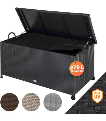 Coffre de jardin xxl Noir Coffre de rangement avec roulettes 270 l étanche Vérin à gaz 117x53x60 cm Jardin Balcon - Casaria