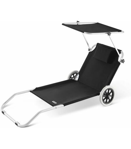 Casaria - Chaise longue Crête de plage transat pliable chariot de transport avec pare soleil réglable voyage robuste Anthracite
