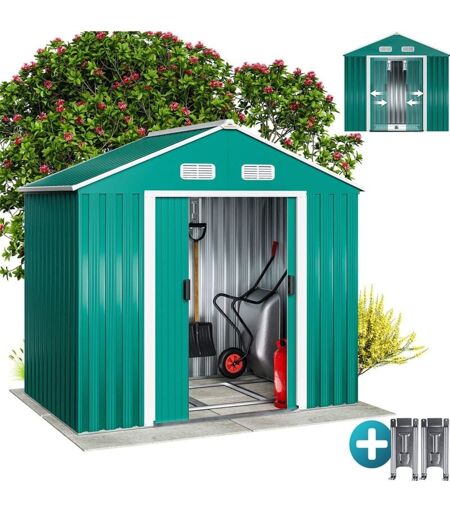 GARDEBRUK Abri de jardin Cabane en métal vert 196x132x188cm Cabanon rangement outils