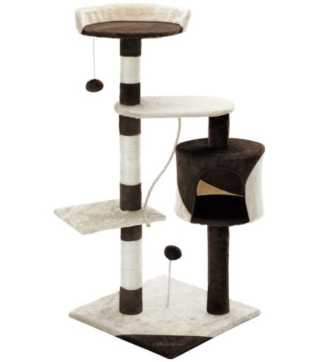 Cadoca - Arbre à Chat 112 cm tour poteaux en sisal à gratter 3 plateformes panoramiques grotte balles de jeu meuble Brun - beige