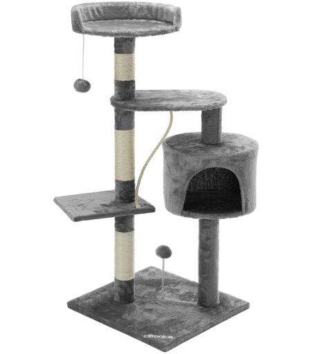 Cadoca - Arbre à Chat 112 cm tour poteaux en sisal à gratter 3 plateformes panoramiques grotte balles de jeu meuble Gris