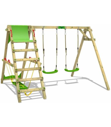 Fatmoose - Portique balançoire Aire de jeux JollyJade avec Portique bois pour enfants - pommevert