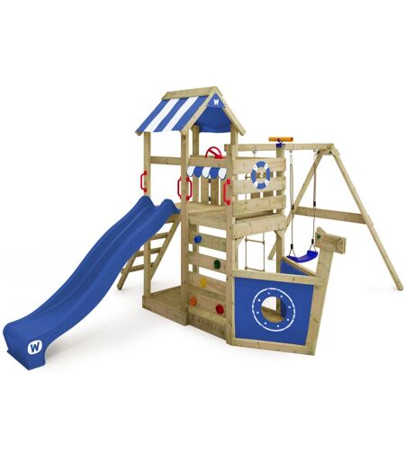 Wickey - Aire de jeux Portique bois SeaFlyer avec balançoire et toboggan Cabane enfant exterieur avec bac à sable, échelle d'escalade & accessoires