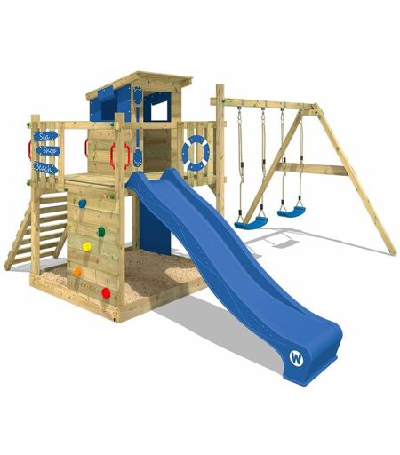 Wickey - Aire de jeux Portique bois Smart Camp avec balançoire et toboggan Cabane enfant exterieur avec bac à sable, échelle d'escalade & accessoires