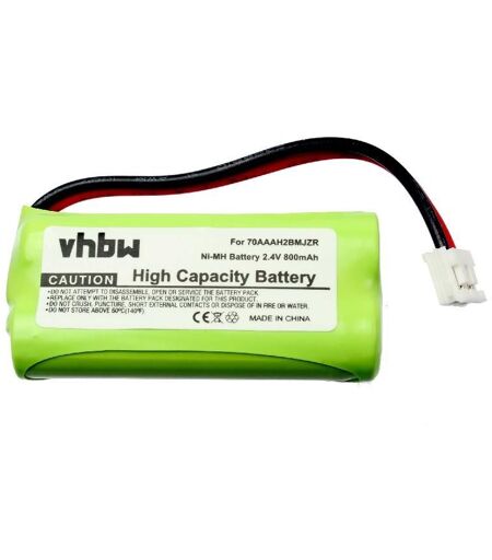 Batterie de secours compatible pour votre appareil. Idéal aussi comme deuxième batterie lors de vos déplacements. Produit neuf dans son emballage d'origine. Ne provient pas du fabricant d'origine, accessoire de qualité de la marque VHBW. Contenu de la livraison: 1 x batterie Caractéristiques techniques: Technologie: Ni-MH Capacité: 800mAh Tension: 2,4 V Couleur: vert Convient pour les modèles suivants: Différents modèles des fabricants DeTeWe, Motorola, Philips, Plantronics, Telstra et VTech. Afin d'être certain de la compatibilité, attention à bien vérifier dans la liste "Remplace les modèles suivants:" si votre modèle est bien cité. Remplace les batteries suivantes: 8013260000, 8013300100, 8913260000 8913300000, 8913300100, 8913350000 BATT-6010, BT184342, BT284342, BBTG0671011 BBTG0743001, BT-101, BT1011, BT-1011, BT-1018, BT-694 ESP-1-47-1166 2SNAAA55HSJ1, 2SN-AAA55H-S-J1, 2SNAAA60HSJ1, 2SN-AAA60H-S-J1 2SNAAA65HSJ1, 2SN-AAA65H-S-J1, 2SNAAA70HSJ1, 2SN-AAA70H-S-J1 2SNAAA70HSX2F, 2SN-AAA70H-SX2F, 2SNAAA70H-SX2F 60AAAH2BMJZR, 70AAAH2BMJZR, 75AAAH2BMJZR BT-800, BT184342, BT284342, BY0929 2SNAAA70H-SX2F, 89-1335-00, BT8001 BT8001, BT8300 Vous trouverez parmis nos produits des housses, cartes mémoires, câbles compatibles avec votre produit. ...