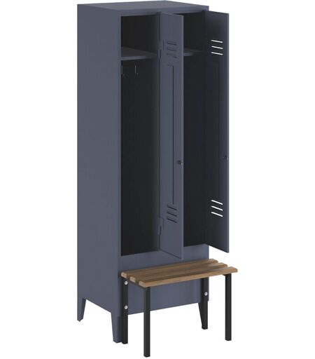 Certeo - Wolf, Vestiaire Berlin 2 avec banc, 2 compartiments, gris bleu