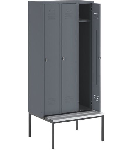 CERTEO Wolf, Vestiaire Berlin 2 avec banc, 3 compartiments, gris bleu