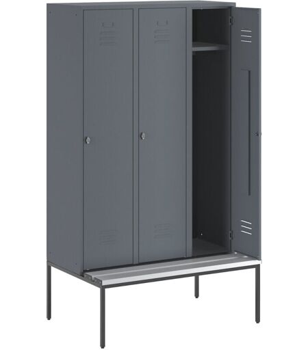 CERTEO Wolf, Vestiaire Berlin 2 avec banc, 3 compartiments, gris bleu