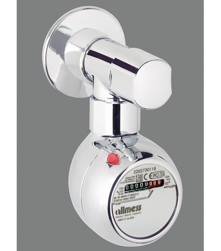 Compteur d'eau à valve Allmess 0306932206 uniquement à utiliser avec le kit de connexion-FleXX Rosace murale enfichable et vanne d'arrêt en céramique avec rosace CONTROLLER Utilisez CONTROLLER-V FleXX pour les modules de communication filaires Clé de montage requise. ...