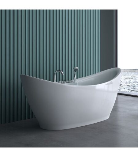 Sogood - Baignoire îlot ovale 180cm blanc Vicenza603 acrylique avec robinetterie 180x80x80 - Blanc