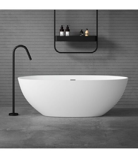 DOPORRO Sogood® Baignoire Îlot Ovale 165cm Blanc Vicenza910 en Résine avec Bonde 165x75x55 cm