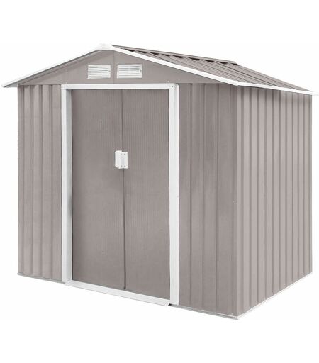 HATTORO S100 abri de jardin en métal avec cadre au sol 213 × 117 × 185 cm (L x P x H) 3,6 m³ toit à pignon gris clair