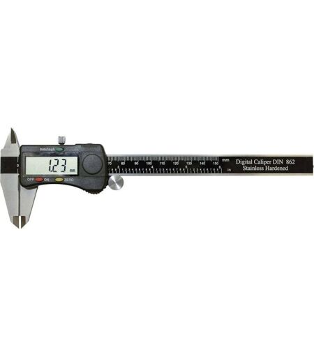 Informations techniques Lecture : 0.01 mm Longueur : 235 mm Longueur du bec : 40 mm Matériau : acier Norme DIN : DIN 862 Plage de mesure (max.) : 150 mm Poids : 300 g Propriété du matériau : inoxydable étalonné : d'usine (sans certificat) Fonctionnalités Inoxydable Avec étui Plage de mesure 150 mm Affichage mm/pouces Avec bec en croix et jauge de profondeur. Contenu de la livraison Coffret en plastique. Configuration requise null Informations supplémentaires . Aucune rétractation n'est possible avec cet article. Illustration similar. ...