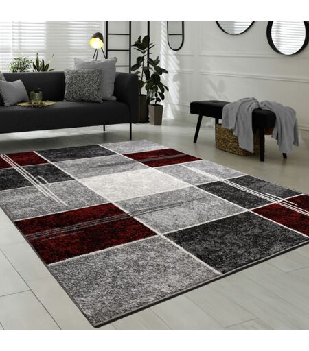 Paco Home - Tapis De Créateur Contemporain à Carreaux Marbré En Gris Rouge 80x150 cm
