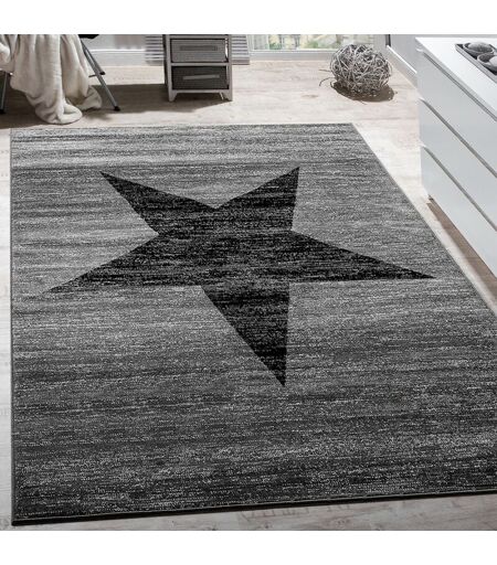 Tapis Design Étoile Motif Moderne Tendance Poils Ras Chiné En Gris Noir 60x100 cm - Paco Home