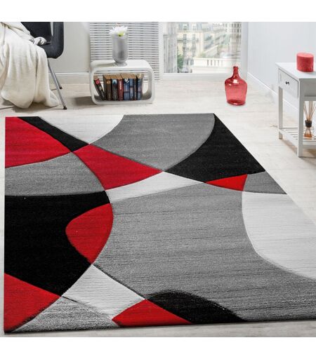 Paco Home - Créateur Tapis Moderne Géométrique Motif Découpe Des Contours En Rouge Noir Gris 80x150 cm