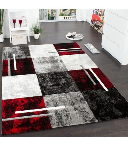 Paco Home - Tapis De Créateur Aux Contours Découpés à Carreaux En Rouge Noir 120x170 cm