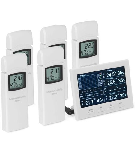 Description générale La station météo SBS-RS-500 de Steinberg Systems est un appareil essentiel pour surveiller la température et l'humidité dans votre environnement. Avec la capacité de mesurer jusqu'à 8 points de mesure, elle offre une vue d'ensemble complète de plusieurs pièces. Grâce à ses données historiques sur 72 heures, vous pouvez suivre les variations climatiques et ajuster les conditions ambiantes pour un confort optimal. Spécifications techniques Modèle : SBS-RS-500 Article : 10030456 Plage de mesure de température : -40 à 60°C Plage de mesure d'humidité : 10 - 90% Précision de mesure de température : ±1°C Précision de mesure d'humidité : ±5% Nombre de capteurs : 5 inclus Canal : 8 (possibilité d'ajouter 3 capteurs supplémentaires) Écran : LCD couleur avec rétroéclairage Fréquence de transmission : 868 MHz Alimentation : Adaptateur 5 V (inclus) Dimensions : 11,5 x 4,5 x 8 cm Poids : 0,44 kg Compatibilité et accessoires Compatible avec Windows XP et ultérieur Logiciel ...