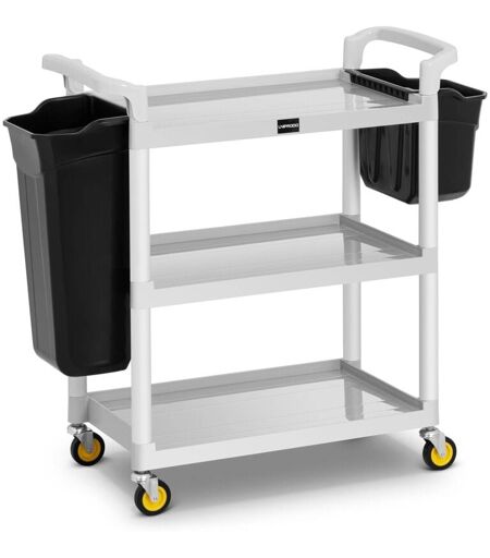 ⭐⭐⭐⭐⭐ Un chariot de service spacieux signé Uniprodo de marques Uniprodo ✅ Modèle: UNICLEAN 150 ✅ Article: 10250322 ⬇️ Caractéristiques principales Spacieux et modulable – deux récipients amovibles en plastique inclus Agile – quatre roulettes pivotantes Solide – capacité de charge de 150 kg Sûr – plateaux avec coins arrondis Bonne prise en main – poignées texturées garantissant des manœuvres agréables ⬇️ Détails techniques Manuel d'utilisation Oui Charge max. 150 kg Nombre de roulettes 4 Pc Matériau(x) Aluminium, PVC, PP Couleur(s) Argenté ⬇️ Description du produit Il n’y a pas que dans les hôtels que la propreté est cruciale ; l’hygiène détermine aussi l’impression qu’ont les clients des restaurants, des immeubles à bureaux et des commerces qu’ils visitent. Afin de permettre un nettoyage rapide, le chariot de service UNICLEAN 150 met à disposition trois tablettes destinées au stockage des produits d’entretien, de même que deux récipients. Ce chariot convient au ménage, mais aussi au ...