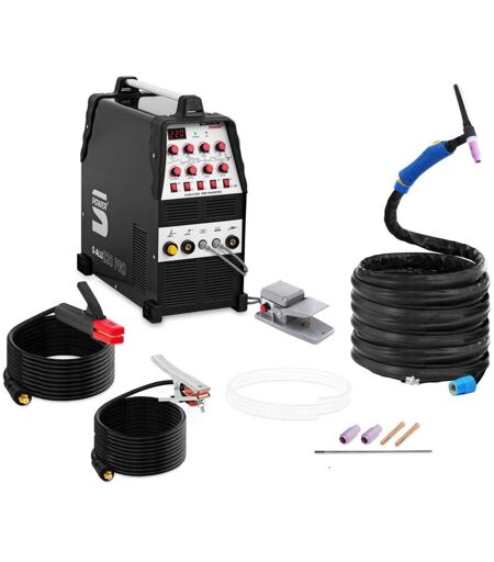DESCRIPTION GÉNÉRALE Le poste à souder S-ALU 220 PRO de Stamos Power² est un appareil professionnel pour le soudage TIG et MMA, avec un courant de soudage de 10 à 220 A, adapté à différents métaux et conditions. SPÉCIFICATIONS TECHNIQUES Courant de soudage : 10 à 220 A Longueur des tuyaux pour la torche TIG : 8 m Longueur des câbles pour le porte-électrode : 8 m Longueur de la pince de masse : 8 m Pédale fournie : oui ...