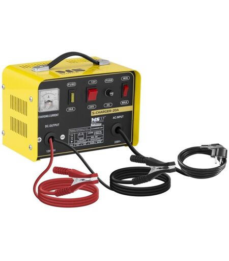 ⭐⭐⭐⭐⭐ Chargeur de batterie voiture - 12/24 V - 8/12 A de marques MSW Motor Technics ✅ Modèle: S-CHARGER-20A ✅ Article: 10060143 ⬇️ Caractéristiques principales Changement facile entre 12 V et 24 V Force de charge adaptée (MIN/MAX) Chargement rapide et fiable via puissance de jusqu’à 12 A Fentes d'aération Câbles alimentation et charge intégrés ⬇️ Détails techniques Tension d'entrée [V] 12 / 24 Capacité de la batterie recommandée [Ah] 12 - 200 Manuel d'utilisation Oui Nombre de piles / batterie 1 Longueur câble(s) avec pince (+) 1.5 m Longueur câble(s) avec pince (-) 1.5 m Puissance absorbée max. 500 W Type de piles Plomb-acide Couleur(s) Noir mat, Rouge éclatant Tension [V] 230 Indice de protection IP IP20 ⬇️ Description du produit Le chargeur de batterie voiture S-Charger-20A de MSW se caractérise par une utilisation simplifiée et des performances de charge impressionnantes. Le chargeur se révèle très utile dans les garages automobiles, mais également dans les domaines commerciaux, ...