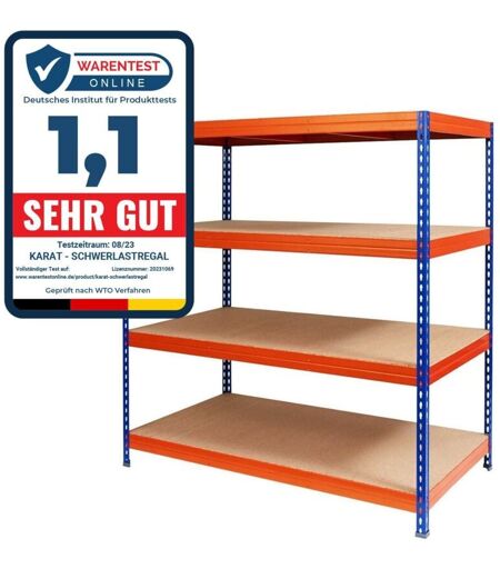 mammut Rayonnage Étagère charge lourde Tôle d'acier 4 Étages Bleu-orange 200 x 150 x 60 cm Charge Max : 1500 kg