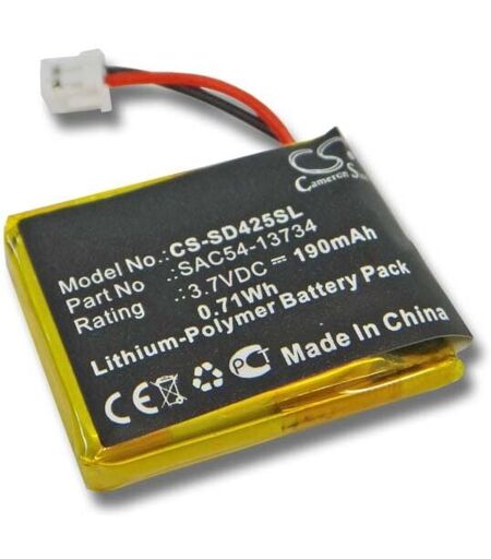 - Batterie de rechange de haute qualité avec une grande autonomie et compatible avec votre collier de dressage (vous trouverez ci-dessous tous les modèles correspondants) - Nos batteries répondent à toutes les normes de sécurité actuelles CONTENU DE LIVRAISON : - 1x batterie DONNÉES TECHNIQUES : - Technologie : Li-polymère - Capacité : 190 mAh - Tension : 3,7 V - Énergie nominale : 0,7 Wh COMPATIBLE AVEC : - Sportdog FieldTrainer SD-425PINK Transmitter Pour garantir la compatibilité, veuillez vérifier si votre batterie utilisée actuellement est répertoriée. REMPLACEMENT POUR : - Sportdog SAC54-13734 La marque vhbw vous assure des pièces de rechange et des accessoires à prix raisonnable sans perte de qualité. Avec nos produits nous voulons prolonger la durée de vie de vos appareils électriques et électroniques, améliorer ou maintenir leur fonctionnement. ...