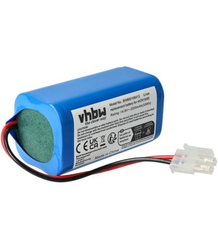 vhbw - the clever way - Batterie de rechange de haute qualité et compatible avec une grande autonomie et compatible avec votre aspirateur robot ou aspirateur robot ainsi qu'appareil de nettoyage (vous trouverez ci-dessous tous les modèles correspondants) - Nos batteries répondent à toutes les normes de sécurité actuelles Pour répandre une odeur fraîche avec votre robot aspirateur ou votre aspirateur, vous pouvez consulter nos offres de cartouches de parfum. CONTENU DE LIVRAISON : - 1x batterie DONNÉES TECHNIQUES : - Technologie : Li-ion - pas d'effet mémoire - Capacité : 2200 mAh - Tension : 14,8 V - Énergie nominale : 32.56 Wh COMPATIBLE AVEC : - Ecovacs Deebot CEN546 - Ecovacs Deebot CEN550 - Ecovacs Deebot CEN640 - Ecovacs Deebot CR130 - Ecovacs Deebot M82 Pour garantir la compatibilité, veuillez vérifier si votre batterie utilisée actuellement est répertoriée. REMPLACEMENT POUR : - Ecovacs 4ICR19/65, BL7402A vhbw - Accessoires et pièces de rechange de haute qualité. Pour une ...