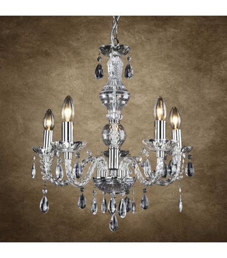 Candélabre de style Ce candélabre à cinq flammes et la couronne conçue, rayonne de style, de l'harmonie et un éclairage optimal. Un bijou qui est conçu, individuellement, pour les espace de toute votre maison et un éclairage parfait. Matériau: métal, plastique Couleur: chrome D imensions: Hauteur totale (avec la chaîne): 150 cm Diamètre: 52 cm Hauteur (sans chaîne): 56 cm Versions: 5 x E14 (ampoule non incluse) Caractéristiques spéciales: - Un éclairage efficace - Aluminium, chrome - Noble design Livraison: 1 x candélabre ...